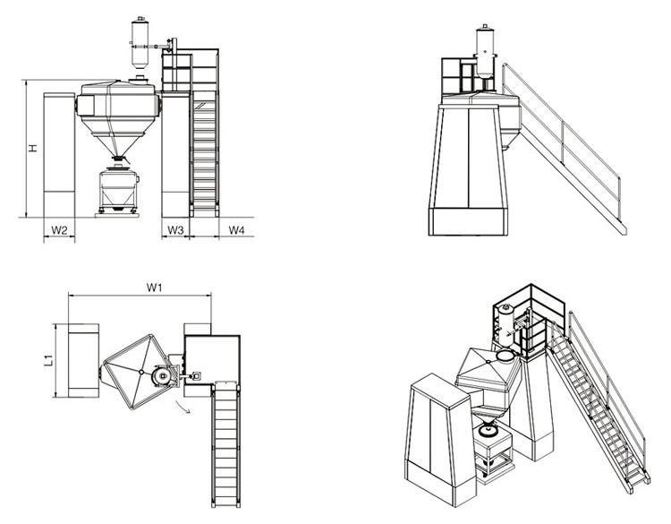 FH料斗混合機經過精心設計,其混合偏角、出料角度、圓弧過度及結構等都達到了理想狀態。